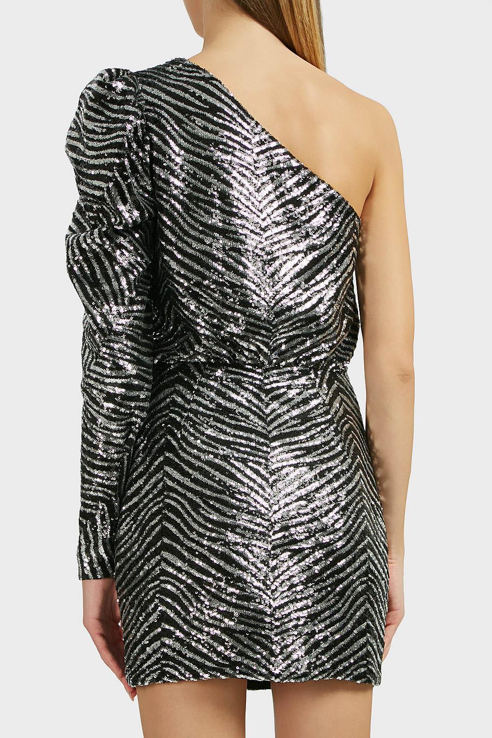 Alexandre Vauthier One Shoulder Zebra Sequinned Mini Dress In Silver Black Lyst